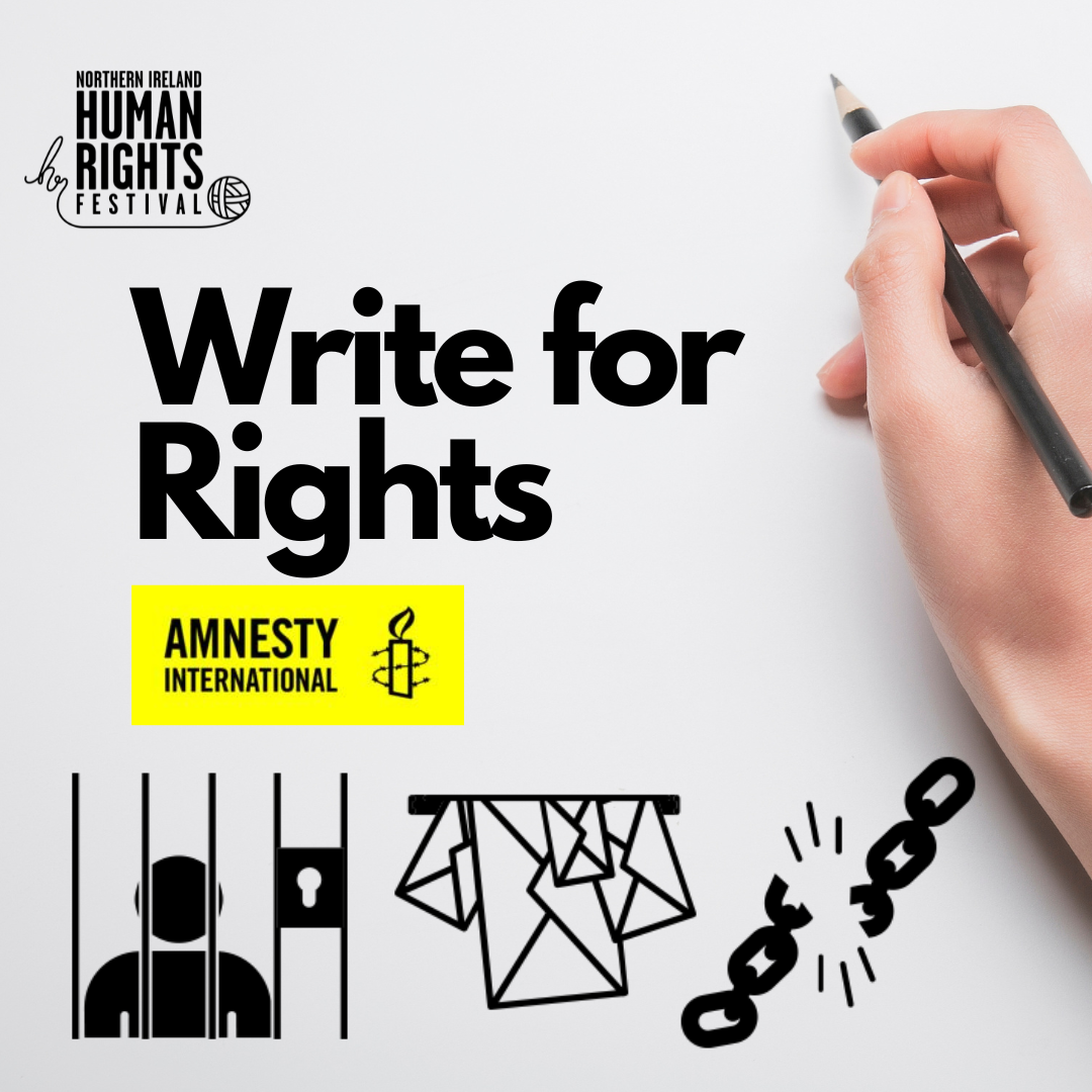 Drop in to join Amnesty International from 10am-2pm in the foyer of the MAC to Write for Rights! With family friendly activities and a lovely cup of tea or coffee, take this opportunity to put your pen to paper and write for rights.